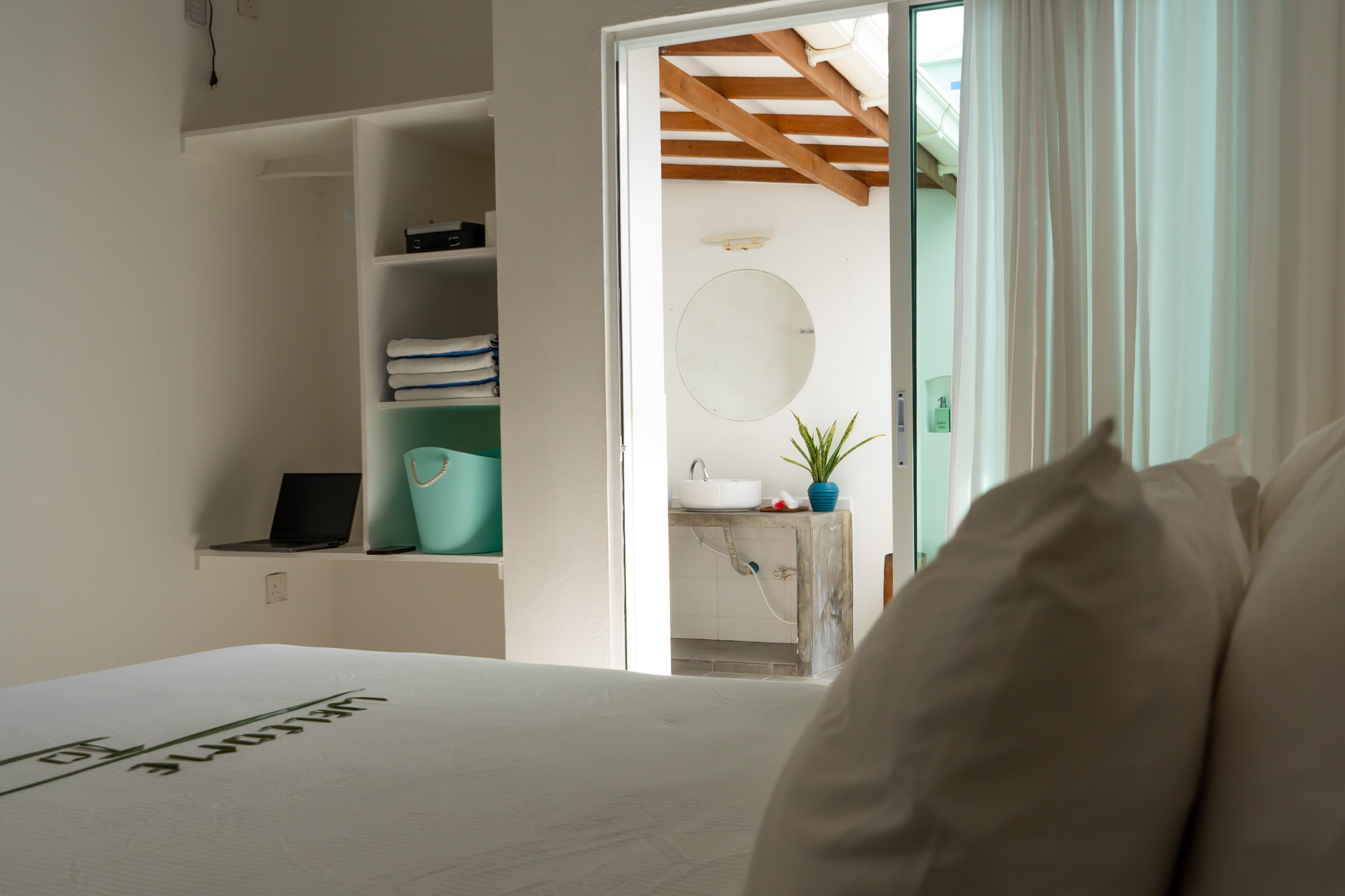 Located on Southeast of the island, facing the beach, palm trees and quite surrounding offers gracious beach side living for guests looking for a laid-back holiday. Comfortable interiors and bedrooms full of summery whiteness of light. Minimalist in design, all rooms are tastefully decorated with attached bathrooms, and some rooms with open air shower. Air-conditioning and overhead fans, hot and cold water have been installed to ensure comfortable living conditions in the typical Maldivian climate.